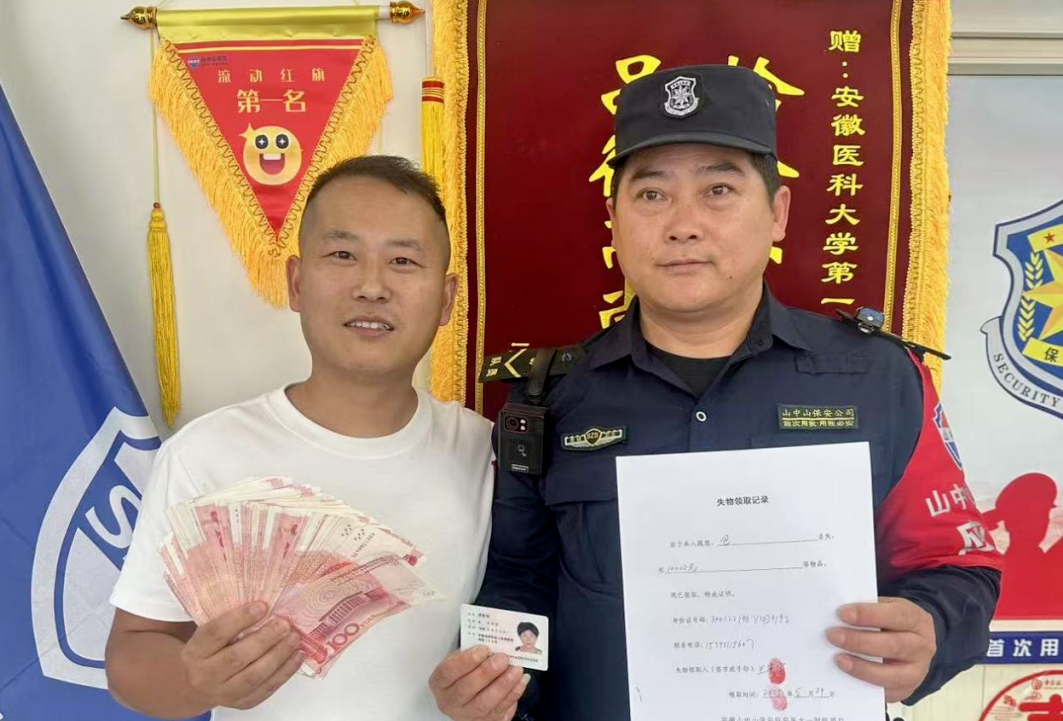 安徽山中山保安員拾金不昧 上萬現金物歸原主