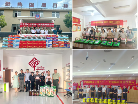 7月25日至28日,在合肥市愛國擁軍促進會的倡導下,8家會員單位主動對接屬地退役軍人事務部門,聯合開展走訪慰問活動,讓軍人軍屬和退役軍人切實感受到社會各界的關心和溫暖,進一步密切了軍政軍民關系,詮釋了讓軍人成為全社會尊崇的職業、讓退役軍人成為全社會尊重的人。
