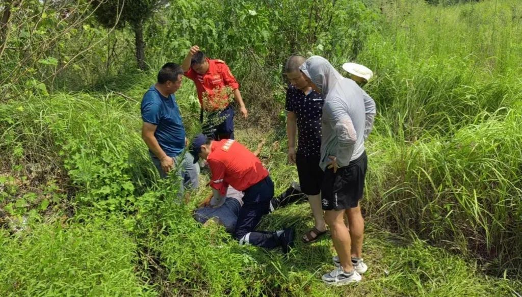 鄉間道路崎嶇,雜草叢生,加上高溫天氣,給搜尋帶來了很大困難。在隊員們堅持不懈的努力下,于當日13時40分左右找到走失老人。當時老人已經昏迷,救援隊隊員梁義祥立即給老人做心肺復蘇直到120急救車的到來。看著救護車將老人接走,老人家屬還沒來得及說感謝,救援隊員們已經默默離開。