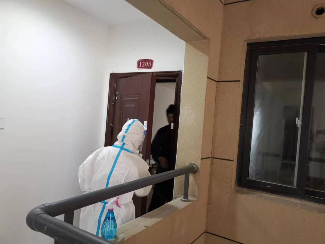 “您好,麻煩您開下門,我們來給您送物資了?!?/p>